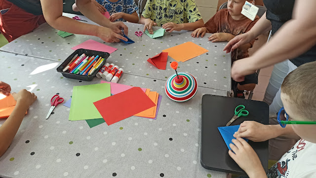 Podczas części praktycznej wszyscy zostali podzieleni na pięć grup, z których każda z nich miała przydzielone zadanie. Ważne jest, że zadania zostały dopasowane do wieku uczestników. Pierwsza grupa wykonywała kulki, które w naszej bibliotecznej instalacji były wodą, Druga grupa zrobiła "gumowe" kaczki do kąpieli, następna grupa przygotowała akcesoria do kąpania . Czwarta grupa zajęła się wykonaniem łódek , natomiast starszaki miały do wykonania małpę.